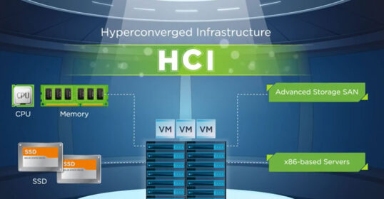 Hyperconverged Infrastructure atau disingkat HCI adalah teknologi yang menggabungkan antara penyimpanan, komputasi, dan server ke dalam satu sistem yang disebut hyperconverged.